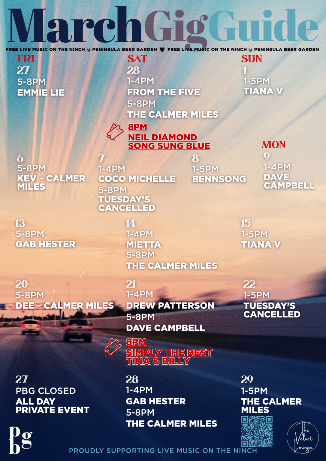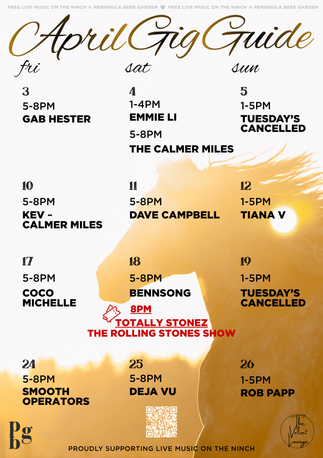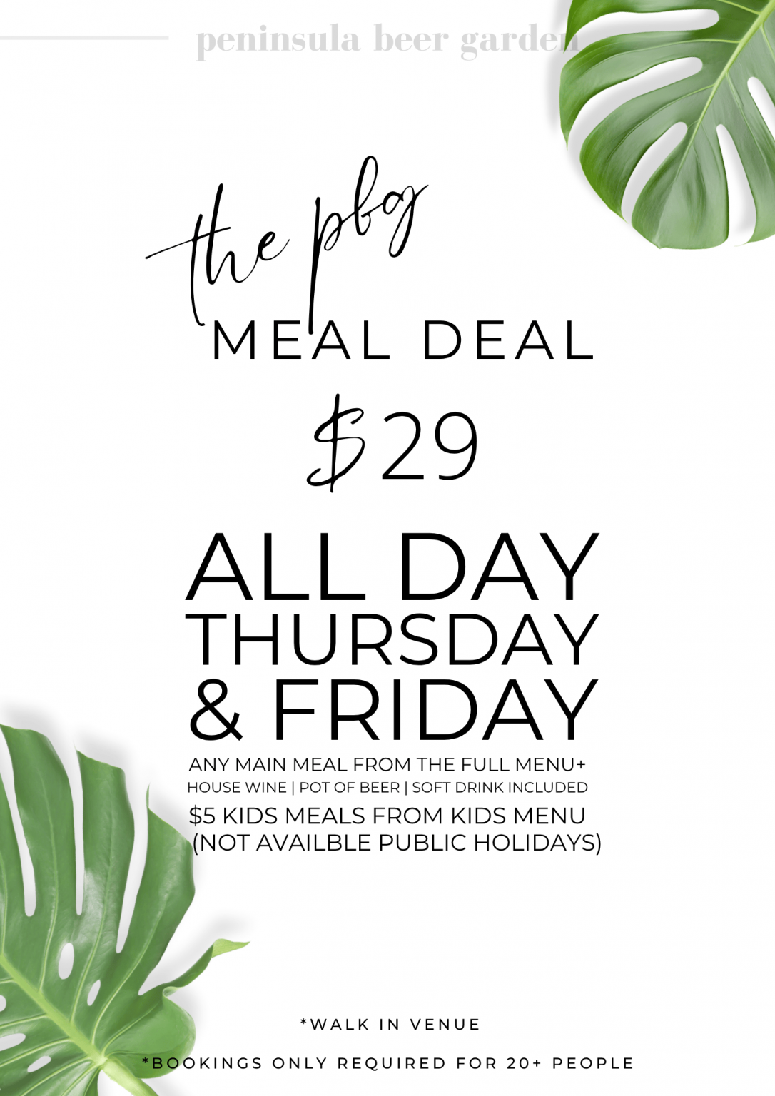 PENINSULA BEER GARDEN we are a cashless facility and only accept card transactions. We are also a walk in Venue with plenty of space, so bookings are not required Kitchen Service Lunch 11:30am-3:30pm Dinner 5:30pm-7:30pm Click here to book in for Totally Stonez Click here to book for House Too Crowded Click here to book for Fleetwood Max